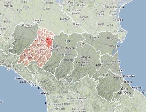 MAPPA PROVINCIA DI PARMA CON CONFINI COMUNALI